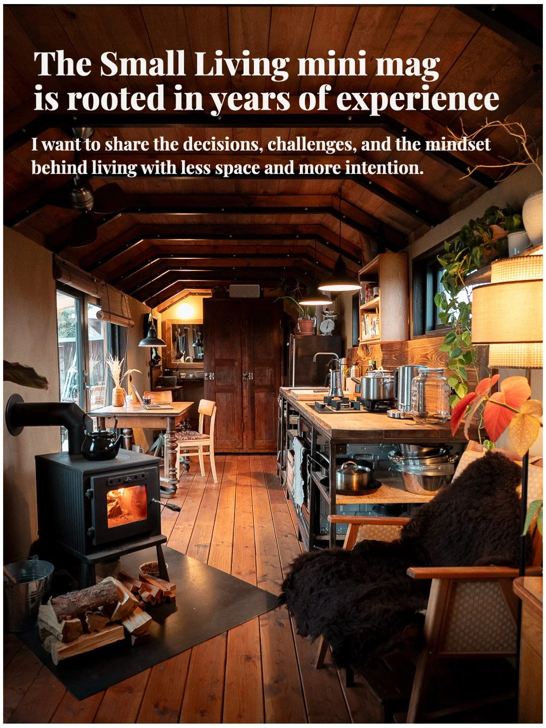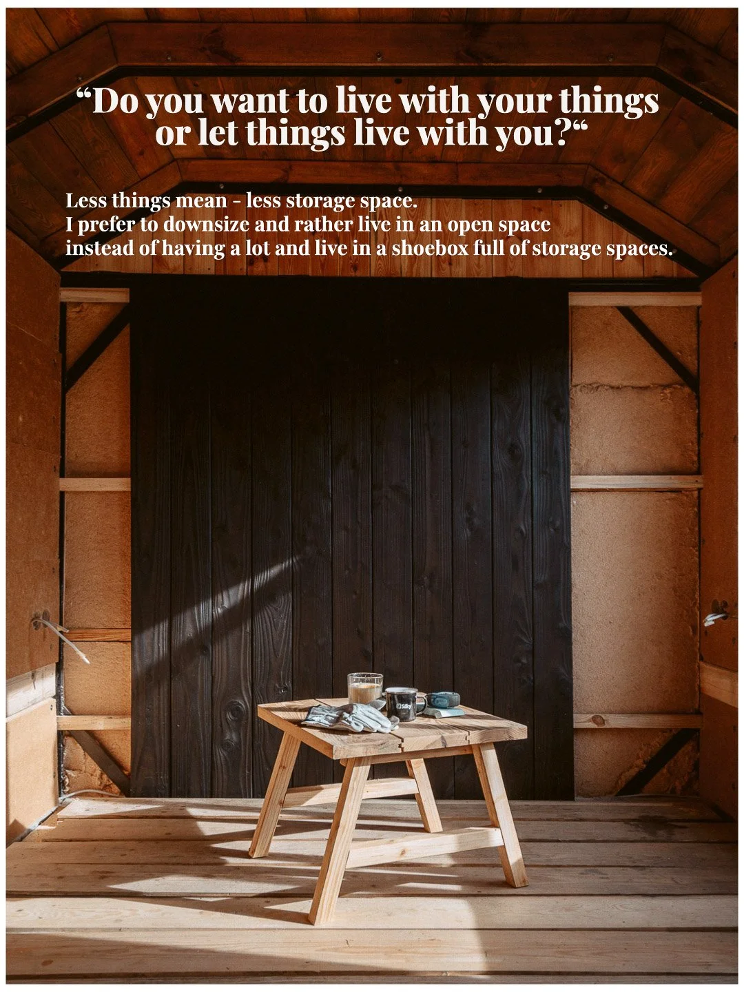 After that, I spent a year building my tiny house with my own hands. Every material chosen carefully. Natural, sustainable, researched. Built slowly, with respect for the environment and for the kind of life I want to live. I’ve been living in it for a year now — and it confirmed what the bus had already taught me. This was never about living small. It was about living consciously. Small living, for me, is a decision to step away from “more” and move toward meaning.
