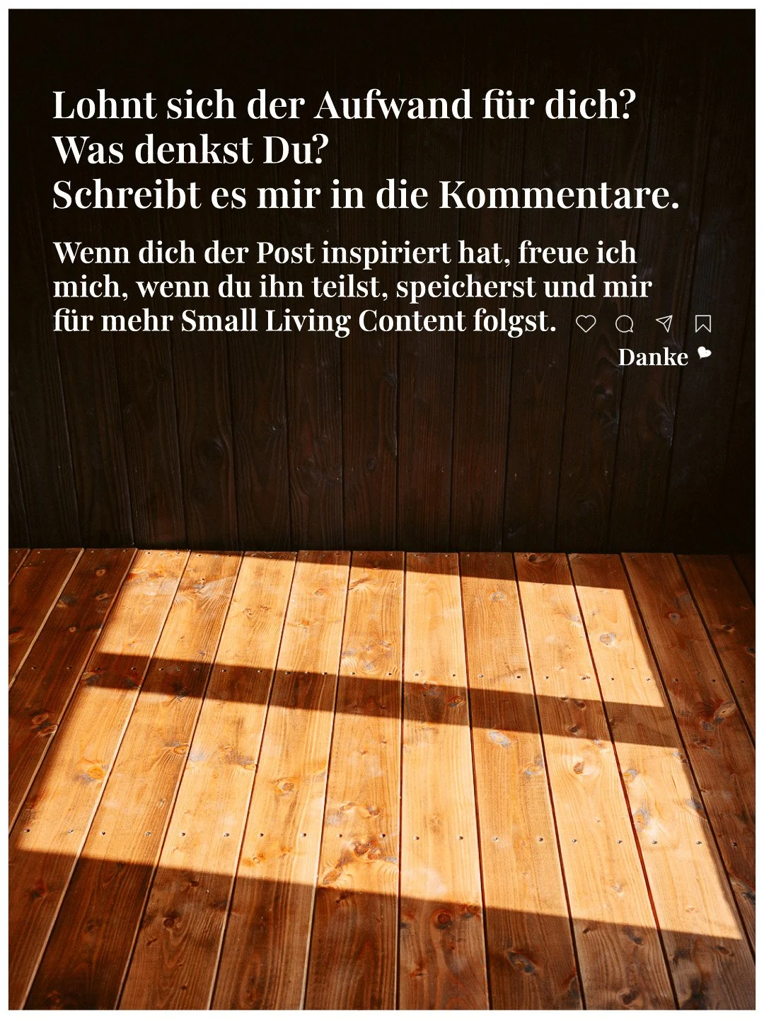 Community bedeutet Austausch. Eure Ideen. Eure Geschichten. Eure Erfahrungen, Fragen und Träume. Alles, was euch bewegt — egal, ob ihr bis jetzt nur von einem anderen Leben träumt oder diesen Schritt schon gegangen seid. Dieser Raum lebt vom offenen Teilen, vom Zuhören und vom gegenseitigen Inspirieren. Small Living entsteht nicht durch eine einzelne Perspektive, sondern durch viele unterschiedliche Wege.