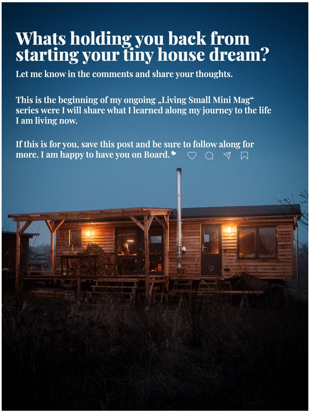 Community means exchange. Your ideas. Your stories. Your experiences, questions, and dreams. Everything that moves you — whether you’ve only been dreaming about a different kind of life so far or you’ve already taken that step. A space to think together, to share openly, and to actively shape what this movement can become. Small living doesn’t grow from a single perspective, but from many different paths.