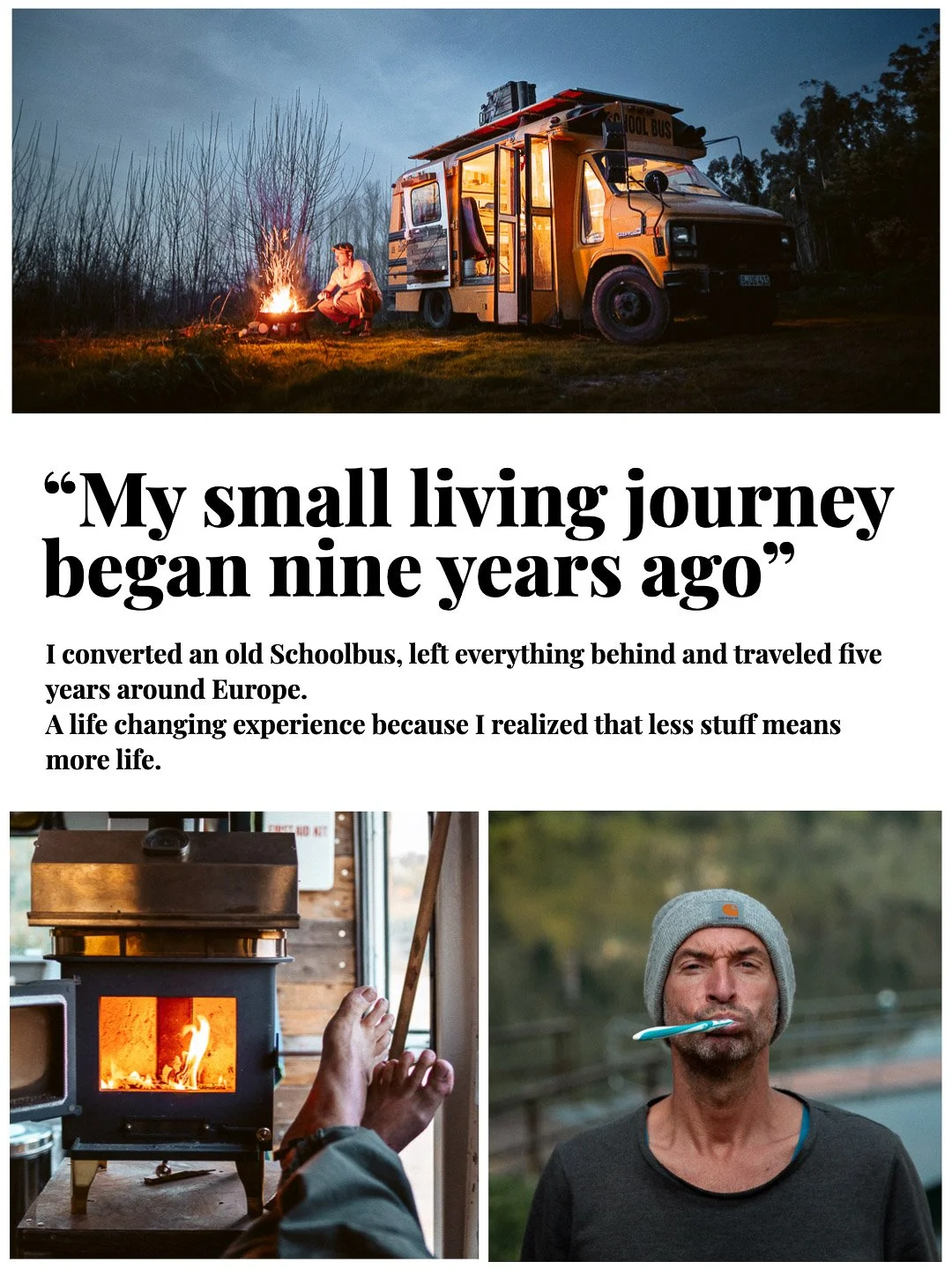 Eight years ago, I didn’t have a master plan. I just had a feeling that the way I was living didn’t feel right anymore. I sold everything and moved into a bus. A journey into the unknown. What started as a step away from “normal” became five years of learning what I actually need — and what I don’t. I realized that less stuff doesn’t mean less life. It means more space. More clarity. More intention.